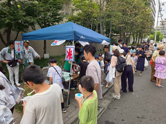 13日の昼には、「こども祭り」で山車やこども神輿の町内巡行。かき氷食べ放題イベント。ラムネつかみ取りなど多くの子供さんに楽しんでいただきました。
