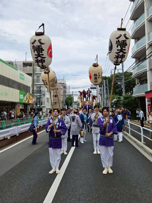 8日は、八幡大神社の「一之宮」の宮出し。「二ノ宮」の宮入に参加。町会神輿の町内巡行も行いました。