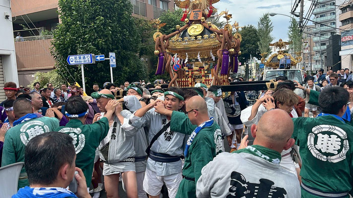 14日は、八幡大神社の「一之宮」の宮出し。「二ノ宮」の宮入に参加。町会神輿の町内巡行も行いました。