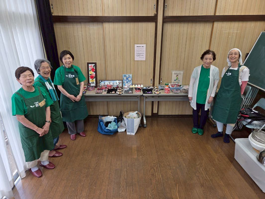 手芸の会、健康体操の会、野菜作りの会、ハイキングの会、ゴルフの会、ボーリングの会それぞれより、日頃の活動を発表。